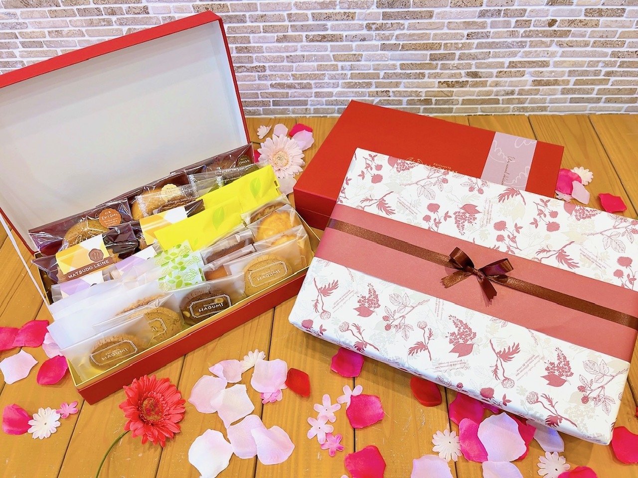 焼菓子17点の詰め合わせギフト。掛紙、包装紙でお包みができます。