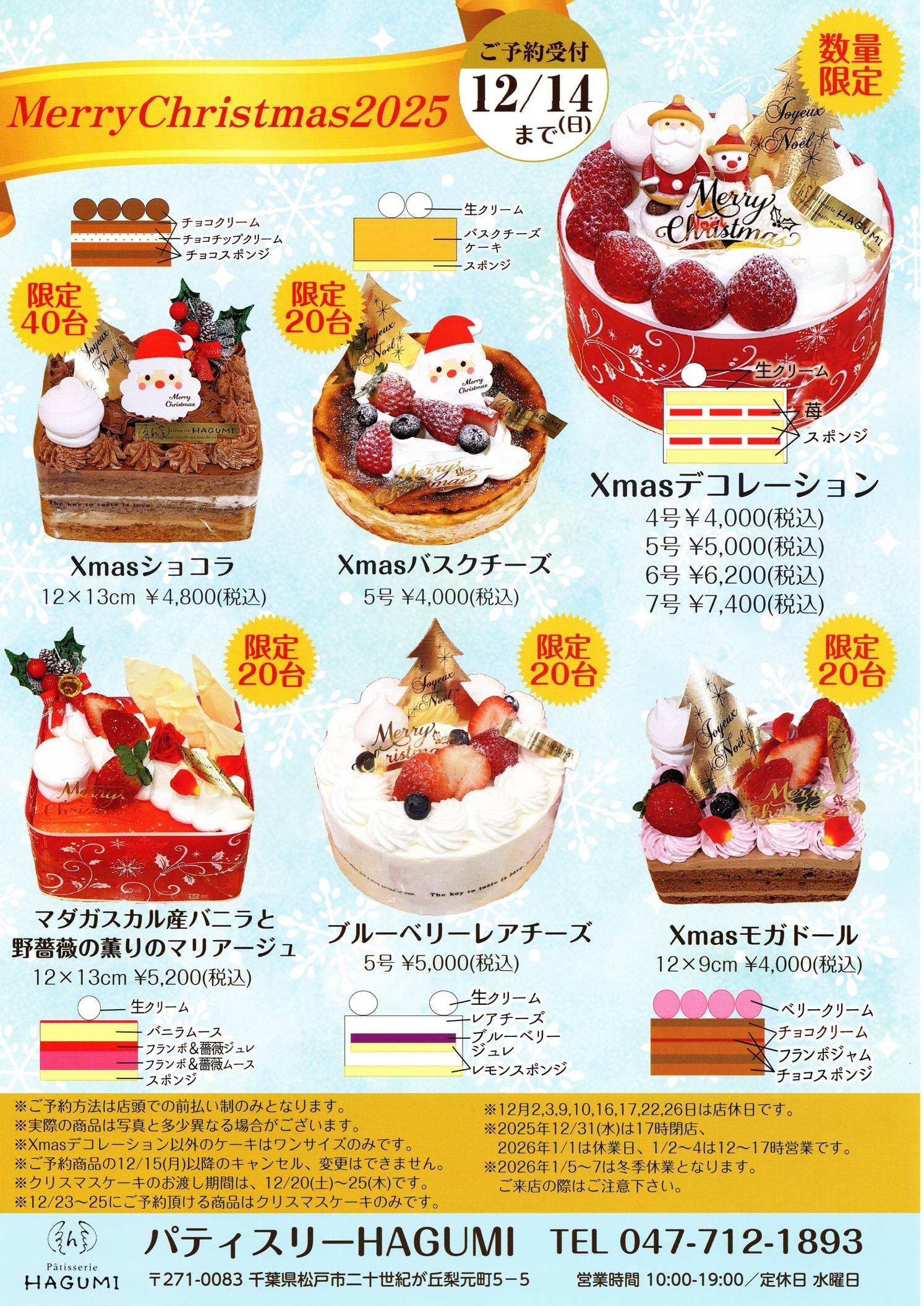 ※Xmas当日に店頭販売分のケーキがご用意できるかどうかは未定です。